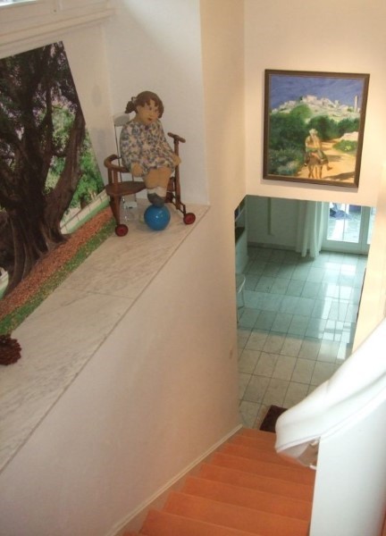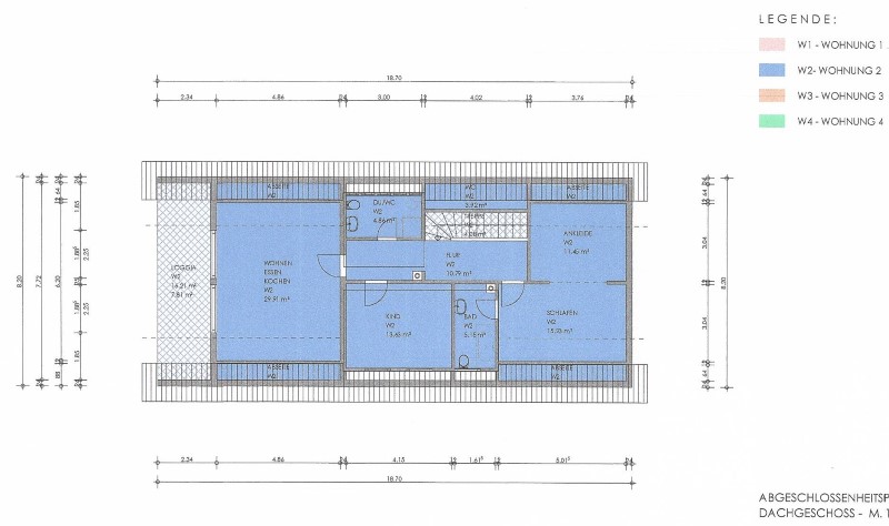 Das besondere und vielseitige Wohnhaus verfügt über 4 abgeschlossene Wohneinheiten (im EG 5-Zi.-ETW, DG 3-Zi.-ETW, UG 3-Zi.ETW und ein kleines Appartement). Diese gemütliche Dachgeschosswohnung verfügt über einen separaten Eingangsbereich, sowie ein Gartenanteil (Sondernutzung), Garage (Sondernutzung) und ein PKW-Außenstellplatz. Vom Eingangsbereich (Diele und Gäste-WC) im Erdgeschoss gelangt man über eine weiße Holztreppe in das gemütliche Ober-/Dachgeschoss. Hier befindet sich ein großzügiges Studio (mit Klimaanlage) und Küchenanschlüssen, sowie eine schöne, überdachte Loggia, wo man herrlich draußen sitzen und entspannen kann. Dieser Raum eignet sich als Wohn-/Ess- und Küchenbereich. Des Weiteren verfügt die DG-Wohnung über 2 weitere Zimmer, eines als Büro- oder Gästezimmer, sowie ein hübsches Schlafzimmer mit direktem Zugang zum Tageslicht-Badezimmer (Badewanne mit Duschvorrichtung, WC). Ein weiteres kleines Gästebadezimmer mit Dusche und WC ist zusätzlich vorhanden. Das Obergeschoss wird derzeit gewerblich als Praxis genutzt. Zur Wohnung gehört ein Keller, PKW-Garagen-Stellplatz (Sondernutzungsrecht), sowie ein PKW-Außenstellplatz. Ein kleiner Gartenanteil beim Eingangsbereich, welcher als Sondernutzungsrecht der DG-Wohnung zugeordnet wird, rundet das Angebot ab.